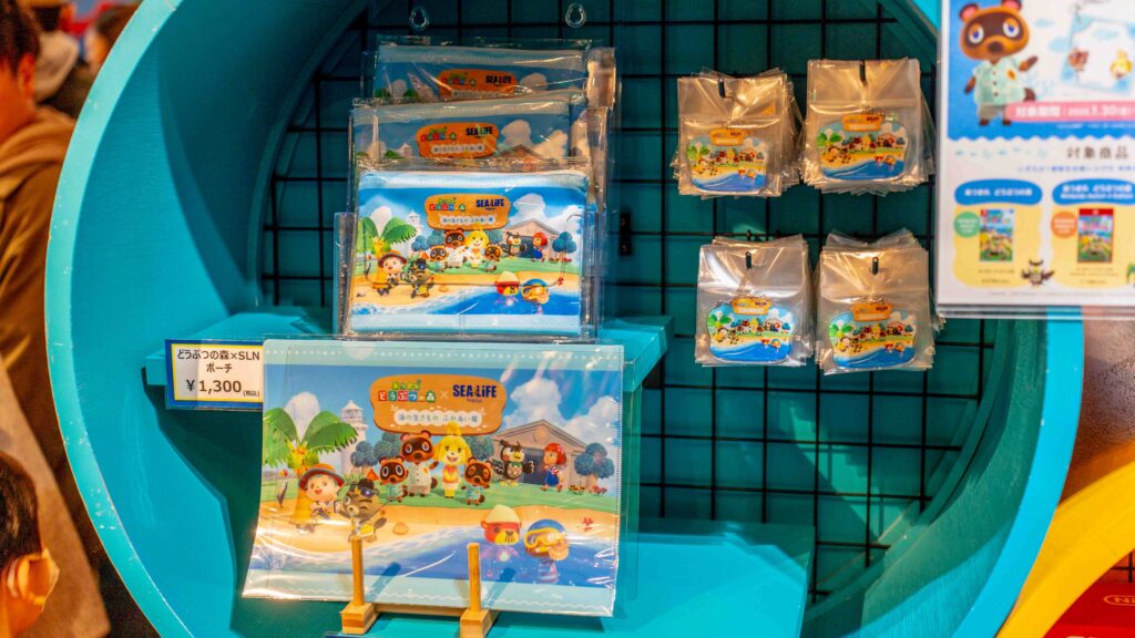 シーライフ限定のコラボグッズや、あつ森のぬいぐるみがずらっと並んでいます。