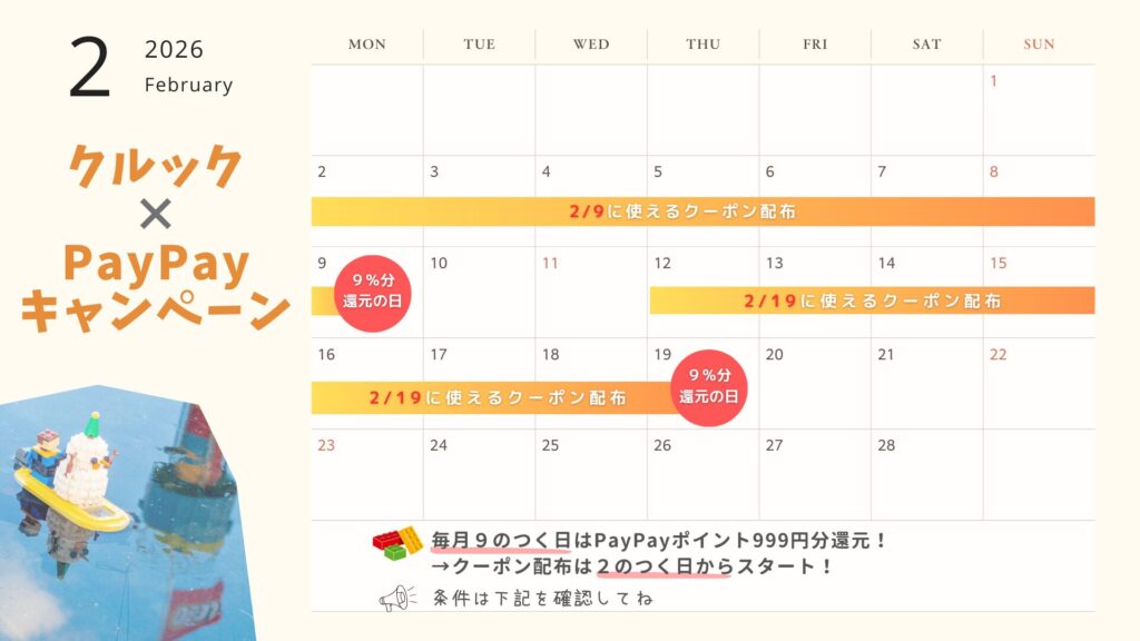 レゴランドのチケットは、「クルック」で前日までに購入+当サイト限定クーポン+PayPayキャンペーンの組み合わせで、ぐっとお得になります。