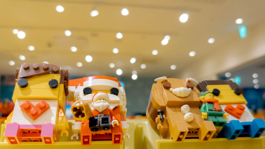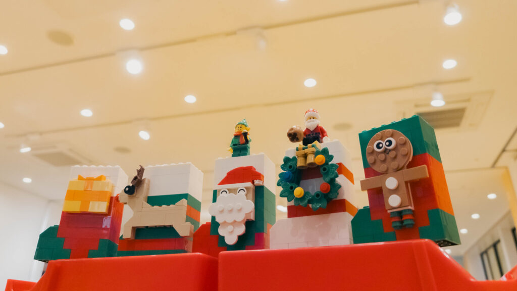イベントエリアではクリスマス限定のミニフィギュアトレードも楽しめるよ!