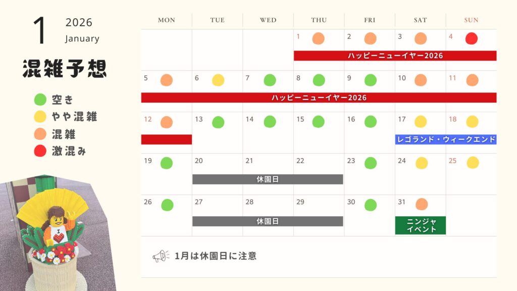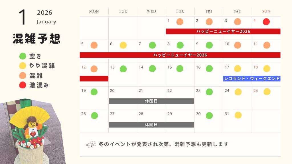 【2026年1月2月レゴランド混雑予想カレンダー】年末年始&冬の空いてる日・混む日まとめ